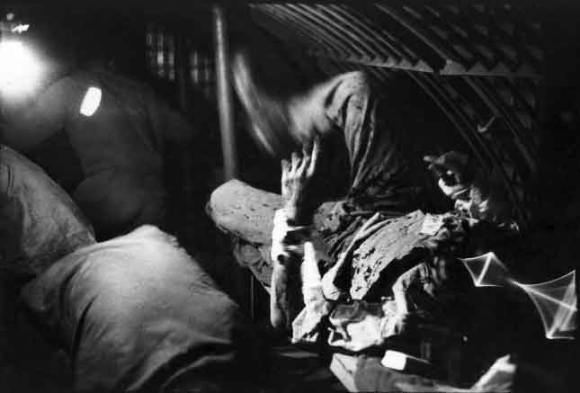 Wounded Soldier Wounded Israeli soldier thrashes in pain in a bunker while waiting for evacuation. Suez Canal, 1968