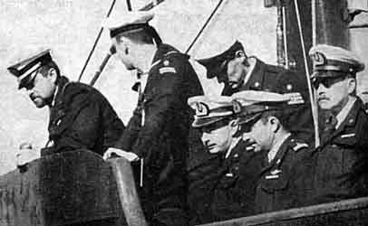 גולדה יורדת מסיפון התנין לצלילי שריקת ההצדעה של רס"ל אורי כוגן |