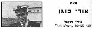 שמי הוא אורי כוגן , בשנת 1958, בזמן שירותי על אח"י אילת (שהוטבעה יותר מאוחר ע"י טיל מצרי) התנדבתי לקורס לוייתן - קבוצת הצוללנים הראשונה. התחלנו ללמוד בבית הספר הצרפתי לצוללות בטולון וסיימנו בבית ספר לצוללות בפורטסמות, אנגליה. הייתי רב סמל חשמל על התנין תחת פיקודו של יוסף דרור. |